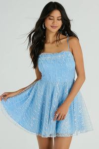 Party-perfect and all about dancing, the Brooke sequin tulle party dress makes a remarkable impression at birthdays, prom, and graduation parties! The cowl neckline and adjustable spaghetti straps create a flattering silhouette, while the flexible boning provides support. The short-length hem and intricate sequin pattern add a touch of glamour to this tulle and stretchy knit-lined party dress! Complete the look in block heels and earrings.