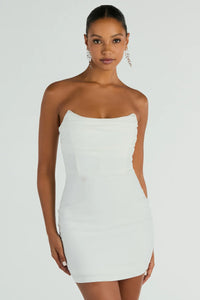 Rise to a chic elevation with this strapless corset mini dress as a lovely bride at a shower, birthday girl, or flirty graduate! Made from a smooth and stretchy knit fabric that effortlessly hugs your curves. The strapless neckline with pleated overlay adds a playful touch, while the flexible boning inserts provide a flattering fit. The bodycon style and mini-length hem create a sleek and stylish look. Complete the look in high heels and jewelry!