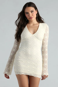 Loved In Lace V-Neck Long Sleeve Short Dress