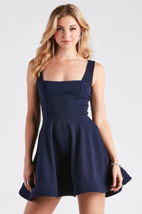 Twirl all night in the flirty Helen crepe party dress at school dances, birthdays, or banquets! She features a sleeveless square neckline, tank shoulder straps, an eye-catching lace-up back with tie closure, hidden side pockets for keeping your hands warm, and a flattering skater silhouette with a short-length bonded hem. The party dress is composed of a crepe knit fabric with a bust lining and plenty of stretch. Complete the look in this short skater dress with strappy block heels.