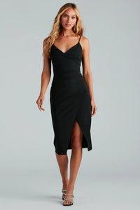Ever So Chic Wrap-Front Midi Dress
