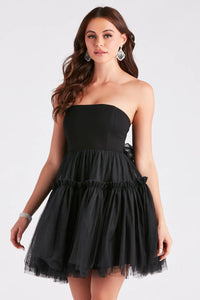 She's Iconic Strapless Ruffled Tulle Skater Dress
