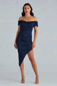 Unforgettable Glitter Off The Shoulder Midi Dress