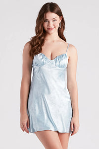 Pop the bubbly and raise a toast to your sparkle in this glitter mesh party dress! It features a sleeveless square neck, a ruched bust, spaghetti straps, and a fit-and-flare short silhouette. Complete the look in a glam necklace set.