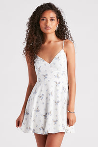 No one can resist you in this chiffon floral dress - a staple for all of the upcoming soirees! It features a sleeveless V-neckline, adjustable spaghetti straps, a tie-back closure, and a flattering skater short silhouette. Complete the look in faux leather mules.