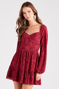 Delicate and dainty, unveil this skater dress for every soiree this season! The short dress features breezy peasant long sleeves, a sweetheart neckline, a padded bust, a smocked back, and a fit and flare silhouette with a ruffled short hem. The dress is designed with a floral jacquard pattern on an airy fabric with a smooth woven lining and no stretch. Complete the look with espadrille wedges for a baby or wedding shower!