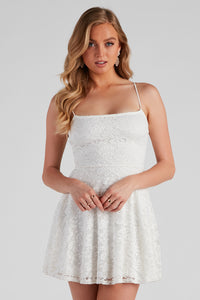 Here comes the grad all dressed in this lace skater dress perfect for ceremonies and celebration parties! Featuring a sleeveless square neckline, sleek spaghetti straps, a high waist seam, and a flowy short hem. Complete the look in wedges and hoop earrings.
