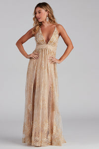 Mona Formal Plunging Glitter Dress