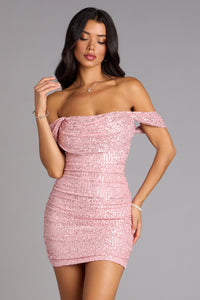 Dazzle Effect Sequin Off-The-Shoulder Mini Dress