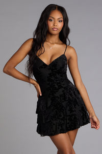 • Charming Demure Flocked Velvet Floral Skater Dress