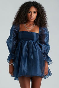 Every step will feel like strutting down the runway in the Lacinda party dress! She features adorable sheer peasant long sleeves, a square neckline with a padded bust, and a flirtatious A-line silhouette and short-length hem. The party dress is crafted from a sleek organza woven fabric with a sheen effect and a chiffon lining. Complete your look for HOCO or a formal party with a glam layered necklace for the perfect statement piece!