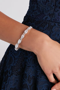 Glisten and glow with this glam bracelet featuring statement cubic zirconia stones with mini rhinestone trim and a clasp closure. Complete your formal attire with fringe earrings.