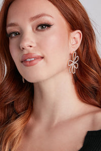 Radiate ultimate glamour in these gorgeous rhinestone bow earrings! They feature a long cascading linear design in a ribbon shape with mini baguette-shaped rhinestone embellishments for the prettiest sparkle. Style with a rhinestone choker necklace.