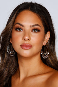 You'll be gorgeous and glam all day long in this pair of hoop earrings! They feature hanging rhinestone accents for added sparkle. Wear them with denim and a tee for a laid-back sparkling look.