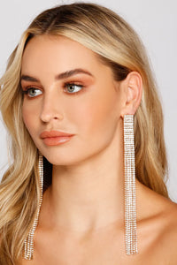 You're all about the drama when it comes to your style! These statement earrings are a total must-have. They feature six rows of long cascading rhinestone fringe for an elevated and glam look. Style these earrings with a strapless formal dress and heels.