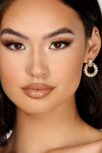 These rhinestone door knocker earrings will for sure glam up any 'fit! Featuring a textured gold look that is super chic, these earrings will be perf for happy hour. Pair with your fave mini dress and slide on mules.