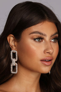 Make a statement with lots of shine with these dazzling earrings! They feature a gold hue, a chain link design adorned with mini rhinestone throughout and a post back closure.Style Number/Barcode: 07001-0086