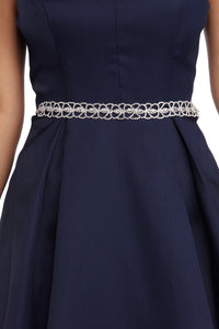 Get this dazzling rhinestone belt to add major bling to your look and show off your glam side! It features a gorgeous front sparkly rhinestone loop design with faceted rhinestones that lead to two rows of rhinestones attached to a chain. The formal belt includes an adjustable lobster clasp closure.