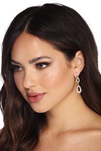 Make your look classic and chic with these gold rhinestone teardrop earrings! They feature a small round rhinestone post connected to scalloped oval and teardrop shaped pieces, adorned with rhinestones. Includes a post back closure.
