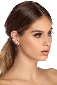 You'll be on cloud nine with these pretty rhinestone ear crawlers! They are curved silver hued earrings adorned with mini rhinestones with a hook back and a post back closure.