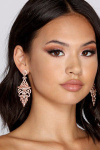 Get that major glam status with these statement-making pink earrings! They feature a round faceted rhinestone post outlined with mini rhinestones that is attached to an intricate swirled chandelier design that will shimmer and glow! Includes post back closures.