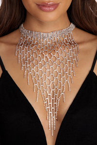 You came through drippin' in this luxe silver lariat necklace! It features two rows of rhinestones for a choker effect, and a single drop row of diamonds to complete the lariat look. Includes a lobster clasp closure.