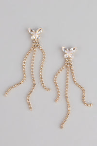 Butterfly kisses with a glam twist—these rhinestone drop earrings bring delicate charm with all the drama. Perfect for dressing up for an event or adding sparkle to a simple look.