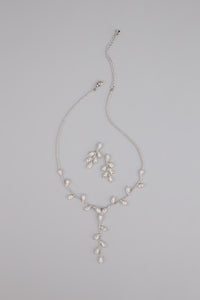 Bring the glow—this necklace and earrings set shines with delicate leaf-inspired details and endless sparkle. Perfect for weddings, holiday parties, or anytime you want a little extra dazzle.