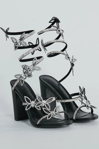 Glamour Butterfly Rhinestone Spiral Block Heels