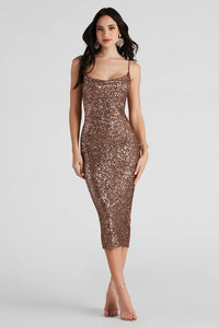 Lillia Formal Cowl Neck Sequin Midi Dress