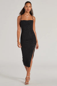 Dazzle Nights Glitter Rhinestone Velvet Midi Dress