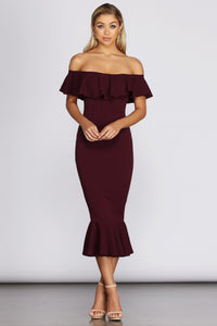 Shop Crepe Midi Version: Add Some Flair Ruffle Detail Midi Dress