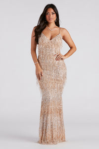 Rebekah Formal Sequin Fringe Mermaid Dress