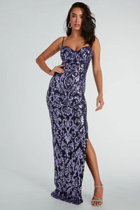 Feel like a true VIP in the Elaina sequin long formal dress at prom, galas, or red carpets. This stunning sequin gown boasts a chic sweetheart neckline, adjustable spaghetti straps for a perfect fit, and a bustier bodice with padded underwire bra cups eliminating the need for a bra. Her slim fit silhouette accentuates your curves while the high side slit adds a touch of glamor along the floor-length hem. Pair this formal dress with earrings, a dainty bracelet, and a clutch to keep your party essentials in!