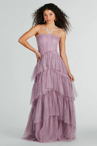 Saylor Formal Glitter Tulle A-Line Long Dress