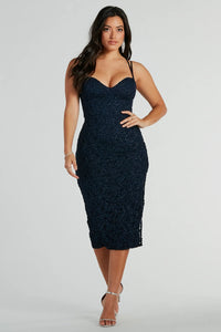 Darcy Lace-Up Glitter Lace Midi Formal Dress