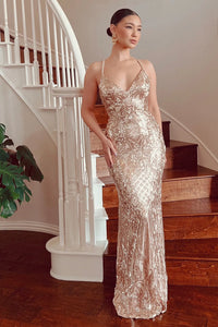 Jennifer Strappy Back High Slit Sequin Formal Dress