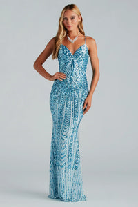 Emerie V-Neck Cutout Slim Sequin Formal Dress