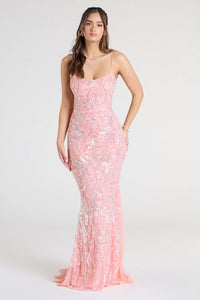Gisela Lace-Up Bodycon Sequin Formal Dress