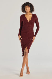 Rhea Long Sleeve Wrap Glitter Midi Dress