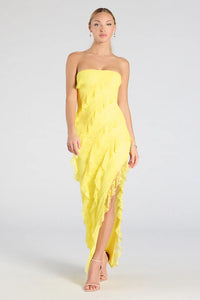 Kellie Strapless Ruffled Slit Lace Formal Dress