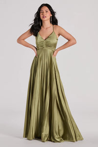 Macy Lace Up Slim Glitter Satin Formal Dress