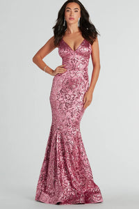 Saskia Lace-Up Mermaid Sequin Satin Formal Dress