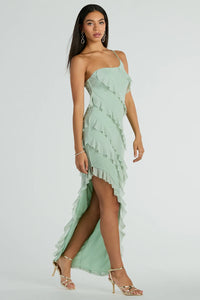 Jaymie One-Shoulder Ruffle Slit Formal Dress