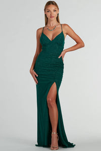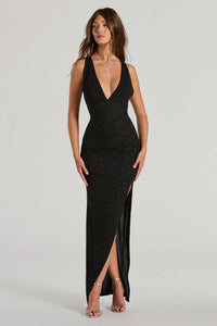Olivia V-Neck Strappy Column Glitter Formal Dress