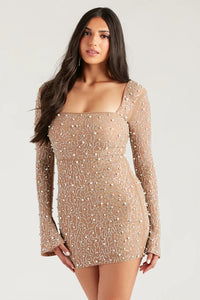 Kim Rhinestone And Pearl Formal Bodycon Mini Dress