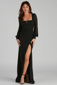 Play up your sophisticated side in the Jae formal mesh long dress that'll steal the scene! Designed with side ruched seams that accentuate your curves along the mermaid silhouette that flares out into the floor-length hem.