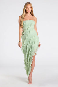 Sherrie Mesh Slit Mermaid Formal Dress Sherrie Mesh Slit Mermaid Formal DressSpecial Occasion Designed to turn every step into a moment, the Sherrie mesh gown features a ruched bodice, delicate straps, and a cascading ruffle slit that adds movement and allure. The fitted silhouette flows effortlessly, giving just the right balance of romance and drama. Fit & Features - Airy mesh-lined fabric