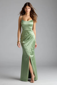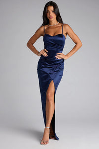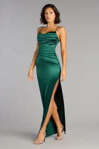 Alessia Satin Cowl Neck Slit Formal Dress