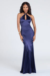 Charlie Halter Keyhole Mermaid Satin Formal Dress